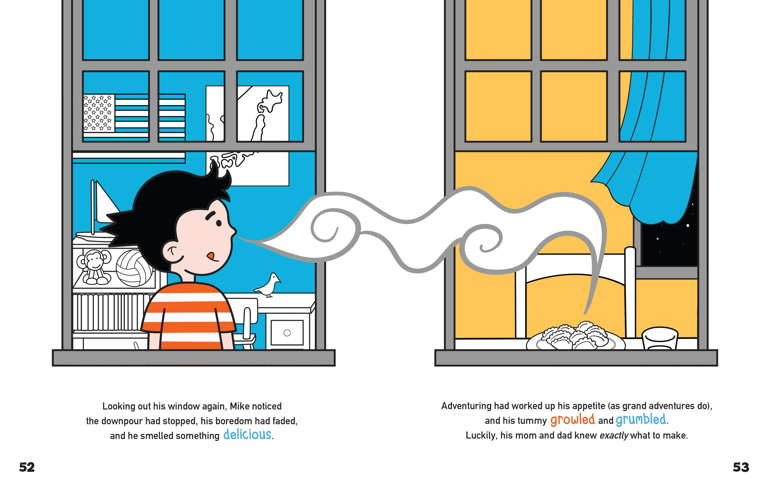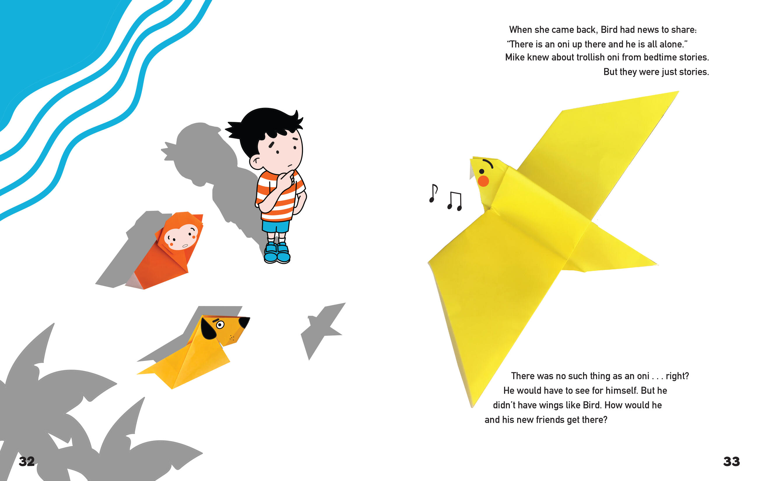 Mike is bored at home on a rainy day. Luckily, he can make his own fun! With nothing but his imagination (and some origami paper), Mike sets out on an epic journey through a jungle, across an ocean, and up the tallest mountain. Along the way, he encounters some new paper friends—Zoe the dog, Monkey, and Bird. Fold origami with Mike on his journey to save his newly folded friends from the monster…and maybe save the monster, too!