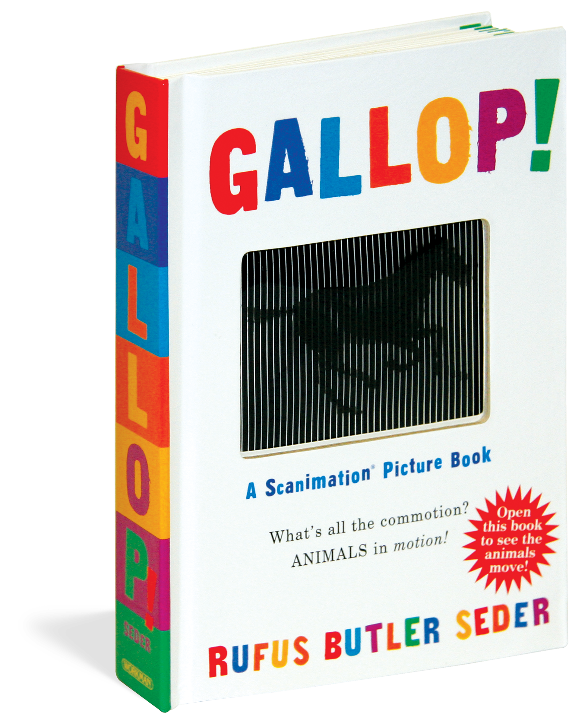 There’s never before been a book like Gallop! Employing a patented new technology called Scanimation, each page is a marvel that brings animals, along with one shining star, to life with art that literally moves. It’s impossible not to flip the page, and flip it again, and again, and again.