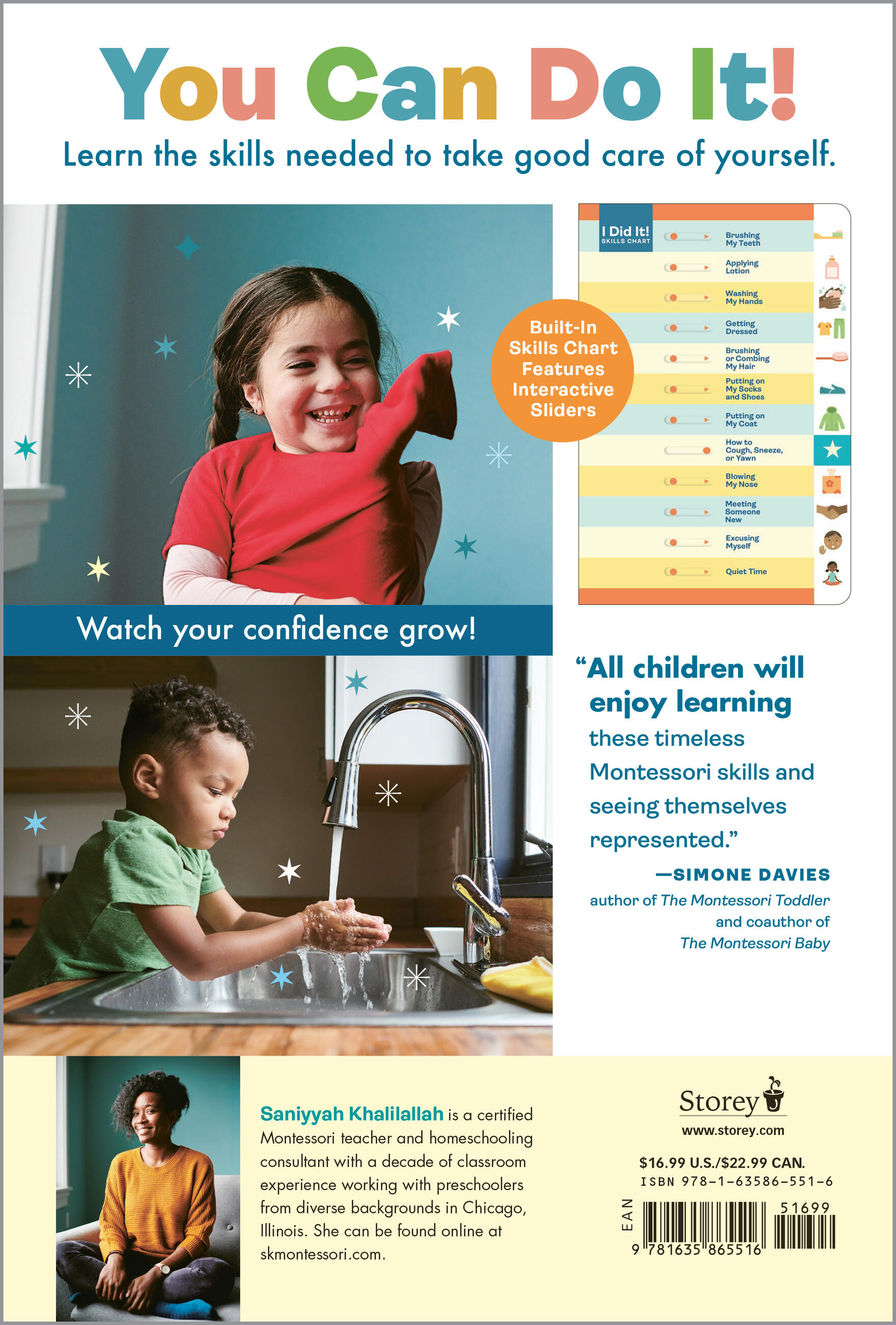 With a toddler-sized hairbrush, a mirror hung at just the right height, and the step-by-step photos in I Did It Myself!, children aged 2 to 5 are on the path to mastering self-care skills. From getting dressed to washing hands, brushing teeth, and applying lotion, each activity fosters independence, builds concentration, helps develop motor skills, and encourages responsibility. Inspired by the Montessori curriculum, the unique book format features an interactive skills chart that’s included on the inside back cover, with sturdy slider windows for each activity. This offers children the perfect incentive to make self-care a daily routine, as they complete each activity, slide the window, and confidently declare, “I Did It!”.