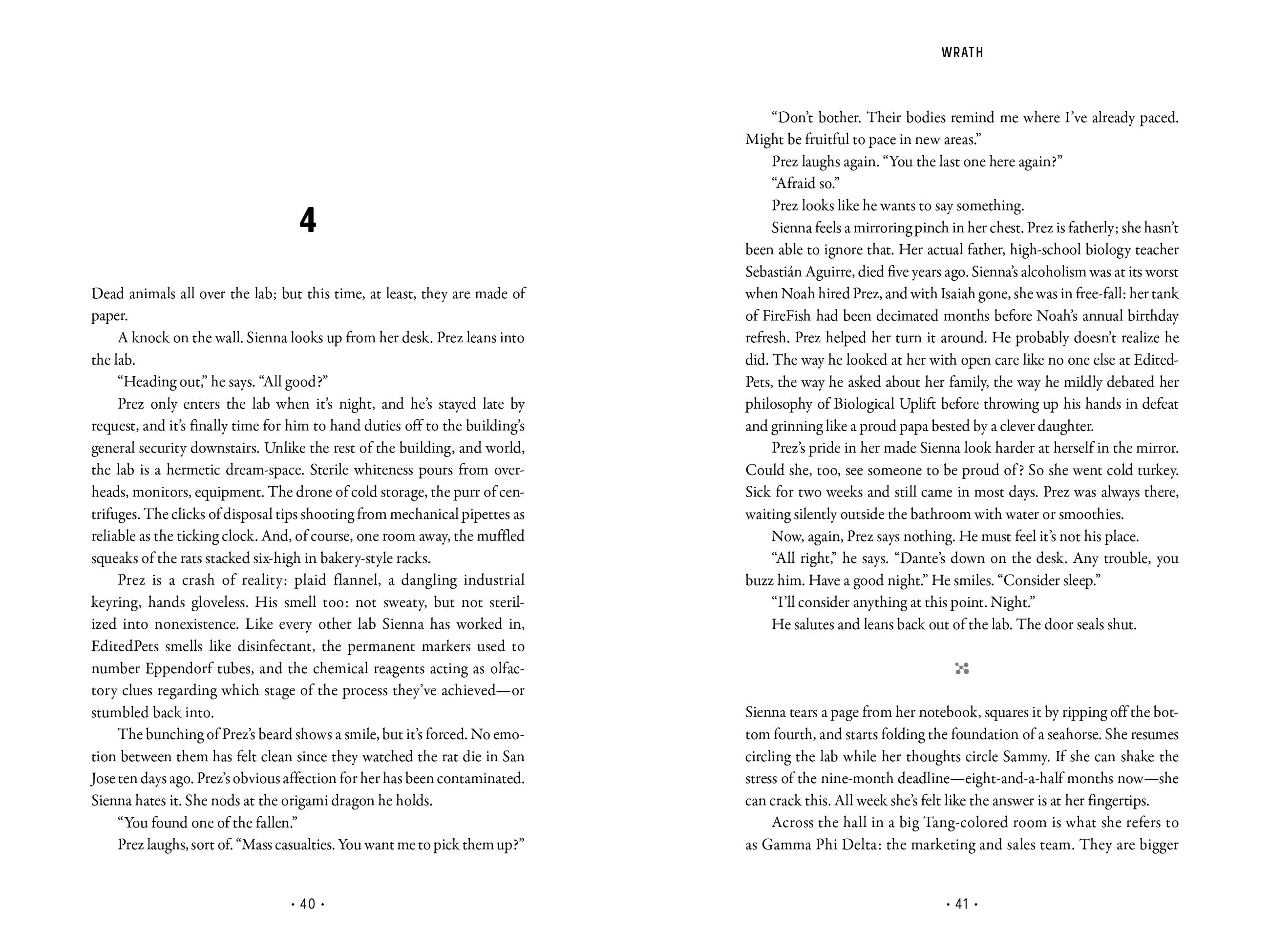 Wrath is the story of a genetically enhanced lab rat whose supersized intelligence helps him to engineer his escape into the world outside the lab: a world vastly ill-equipped to deal with the menace he represents. Modified through advances that have aggravated his aggressiveness, and endowed with a rat’s natural proclivity to procreate regularly, Sammy has the potential to sire a rodent army capable of viciously overwhelming the human race.