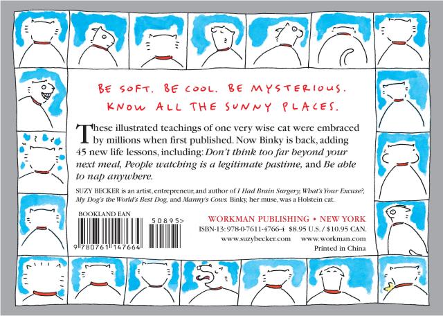 In the years since we first published All I Need to Know I Learned from My Cat , with over 2 million copies in print and the fastest-selling book in Workman’s history, one thing hasn’t changed—people are still starved for wisdom. Few oracles have dispensed as much common-sense truth as Binky, Suzy Becker’s cat. “It’s O.K. to wear the same thing every day.” “Know all the sunny places.” “Flaunt your hair loss.” “Get mad when you’re stepped on.” Life lessons such as these and dozens of others propelled the book like a champagne cork to the top of The New York Times bestseller list.