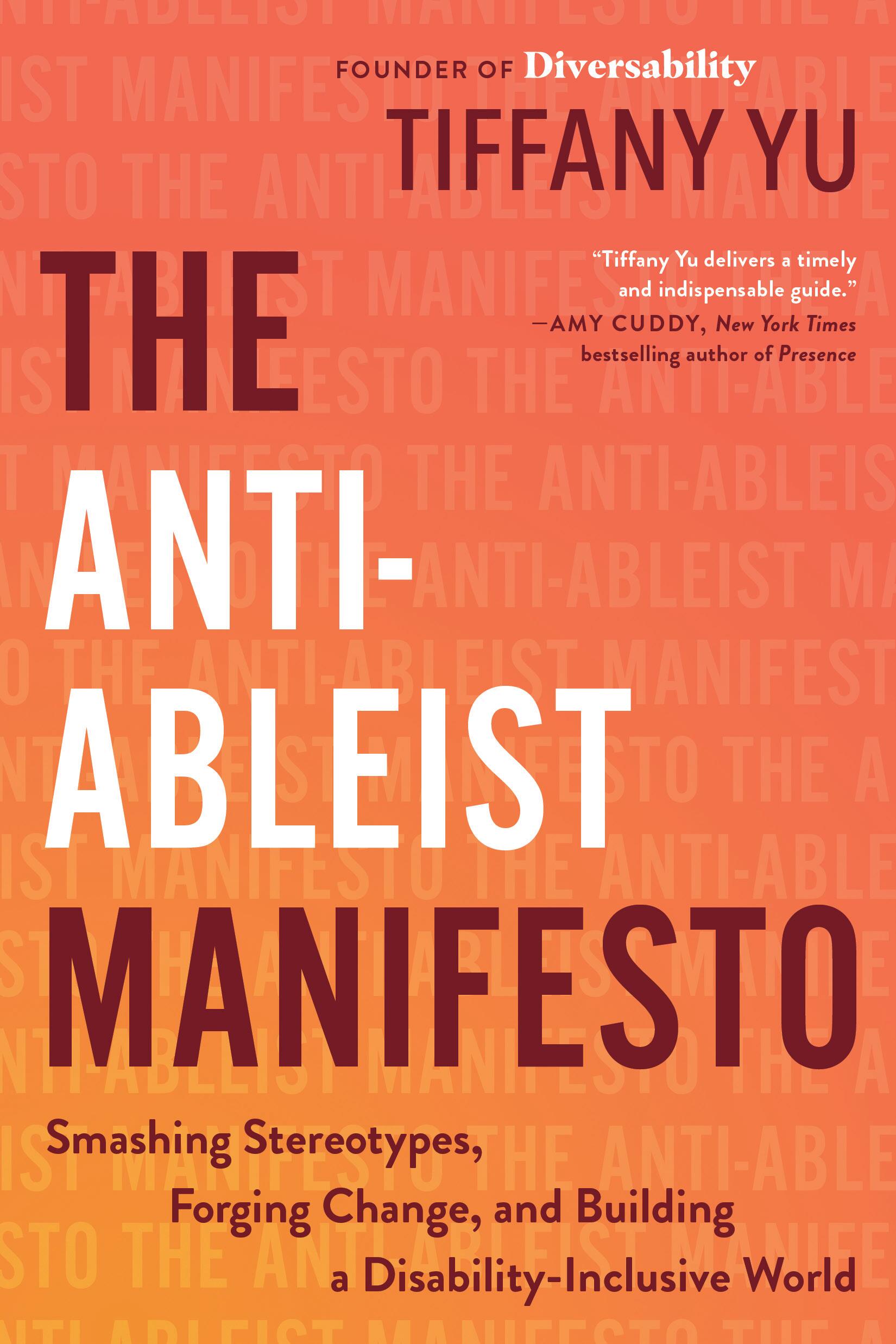 "Tiffany Yu's The Anti-Ableist Manifesto is a powerful journey, merging personal narratives with collective insights to confront and dismantle ableism. As someone deeply immersed in the study of prejudice, including the often-overlooked discrimination faced by people with disabilities, I find that Yu delivers a timely and indispensable guide."Amy Cuddy, New York Times Bestselling Author of Presence