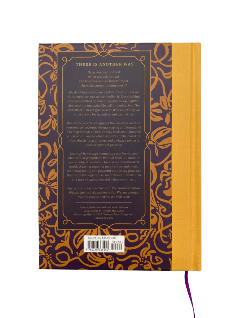 We Will Rest! is a modern sacred object, medicine for a sick and exhausted world. Weaving together meditations and poetry with storytelling and art, Hersey provokes liberation through refusal and trickster rebellion in the face of capitalism and white supremacy.