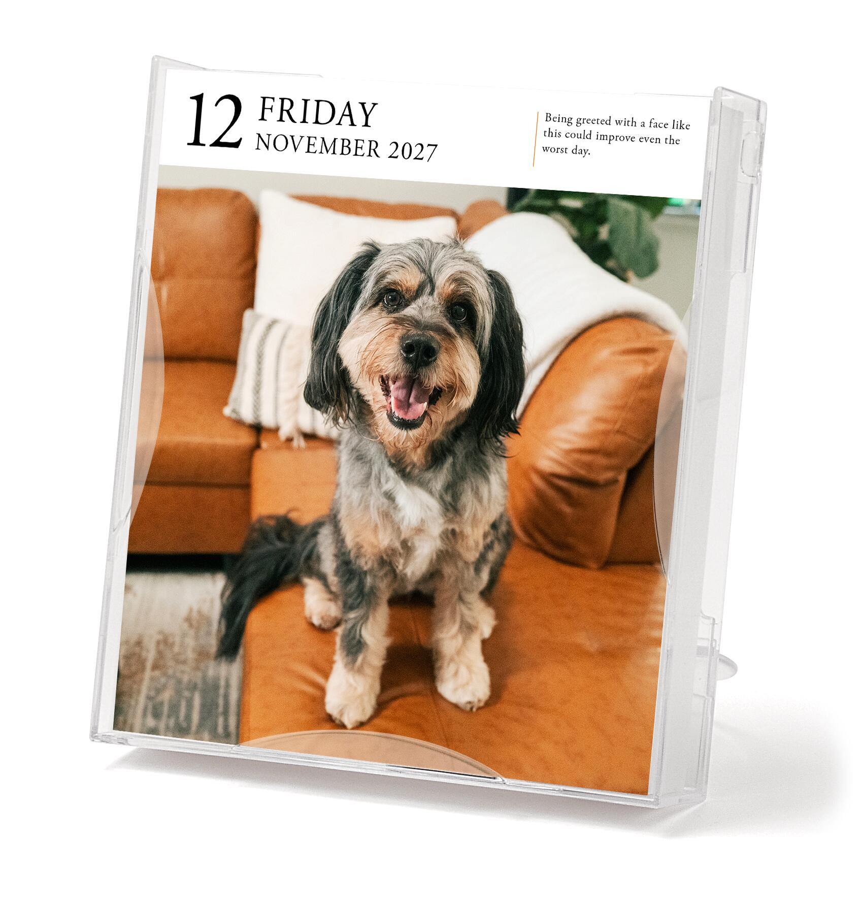 - GORGEOUS GIFT: Any dog person will enjoy a year of energy, charisma, and cuteness with this calendar full of lush photos with witty captions, trivia, and quotes in the elegant gallery format.