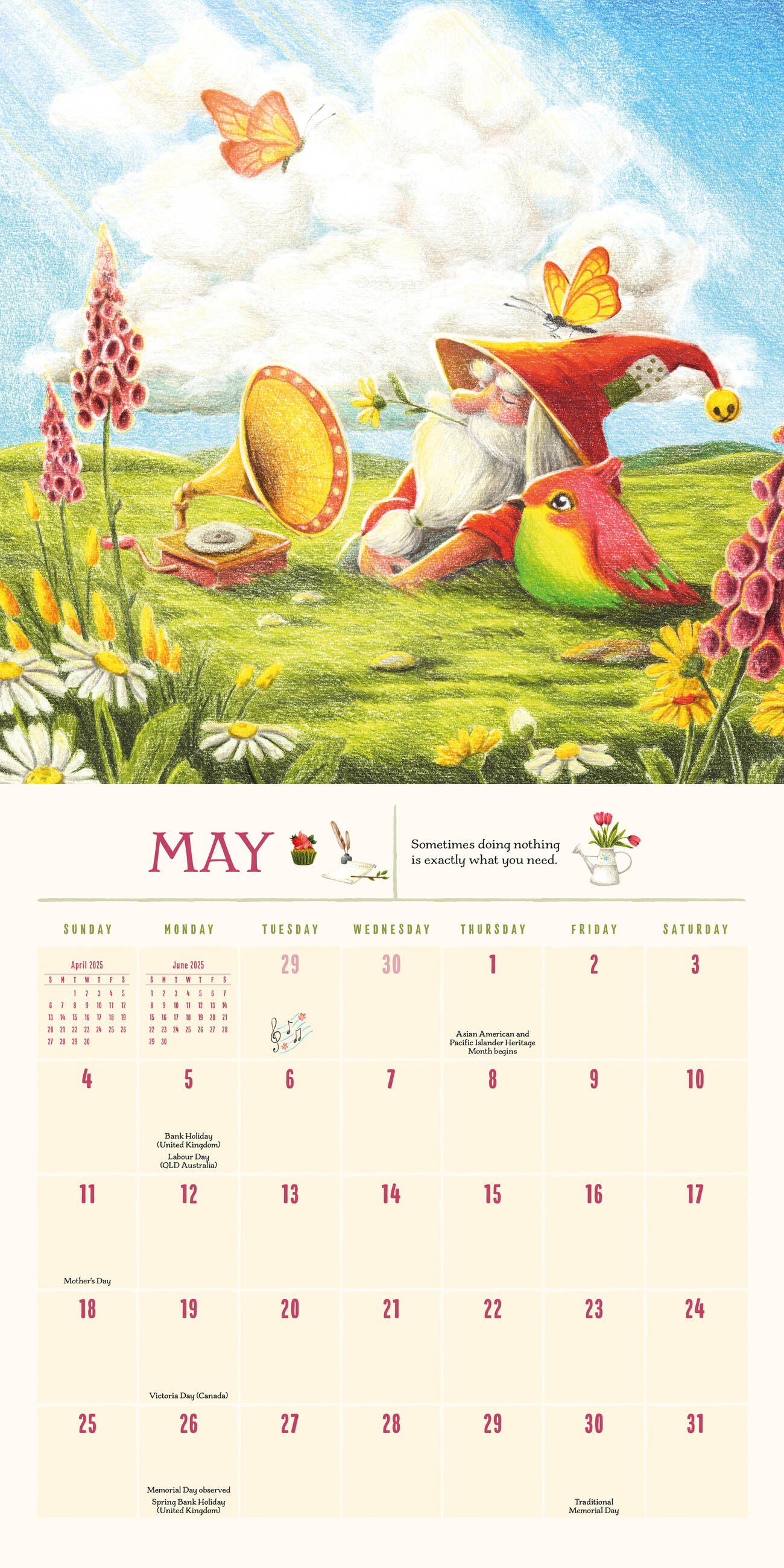 - GORGEOUS ARTWORK: Irresistible nostalgic yet vibrantly fresh, Martha May’s lovely illustrations brighten each month with adorable gnomes in fun scenes.