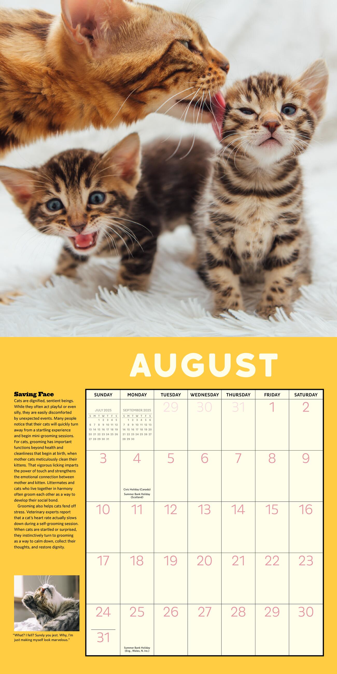 - BEAUTY AND BRAINS: More than just cute photos of cats (although those are definitely still included), this calendar offers reliable information and expert advice on cats’ behavior and communication.