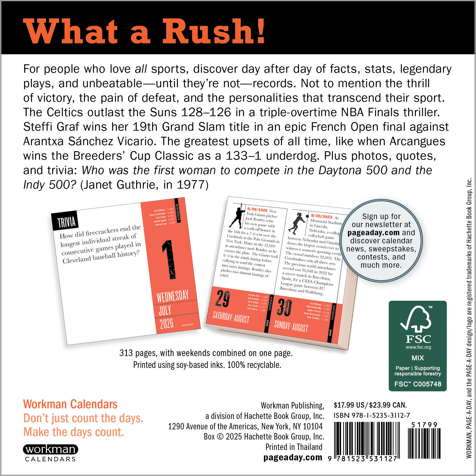 - PACKED WITH FACTS: Discover day after day of legendary athletes, unbeatable records, amazing accomplishments, unbelievable feats, controversial moments, spectacular comebacks, and more.