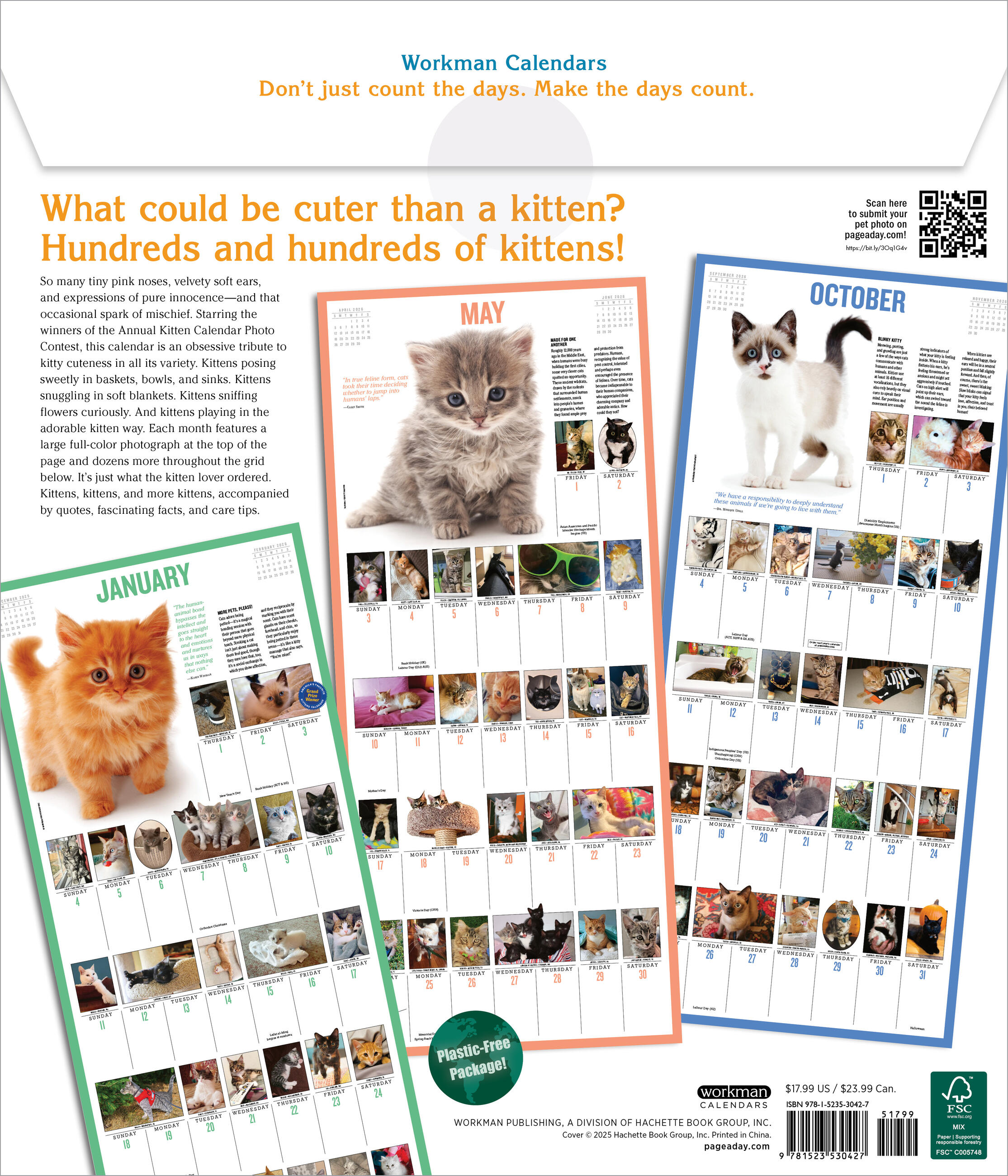 - KITTY CUTENESS: No other calendar on the market features more tiny pink noses, velvety soft ears, or mischievously sweet expressions. And they’re all winners of our Annual Kitten Calendar Photo Contest!