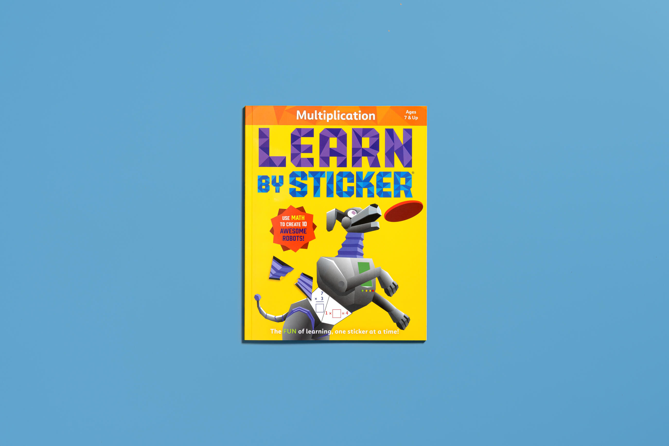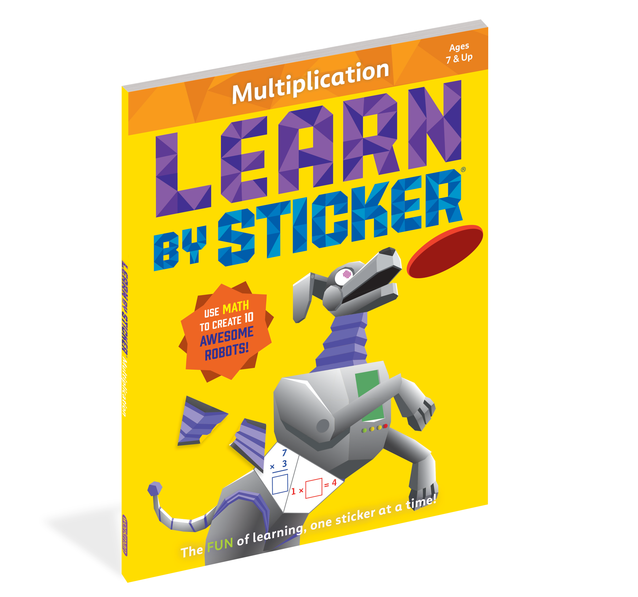 In Learn by Sticker: Multiplication, solve third grade-level multiplication problems and use the answers to determine where to place each sticker to create ten sticker images of supercool robots. Plus, the back of each sticker page contains fun, critical thinking-based math activities like solving riddles, exploring mazes, and more.