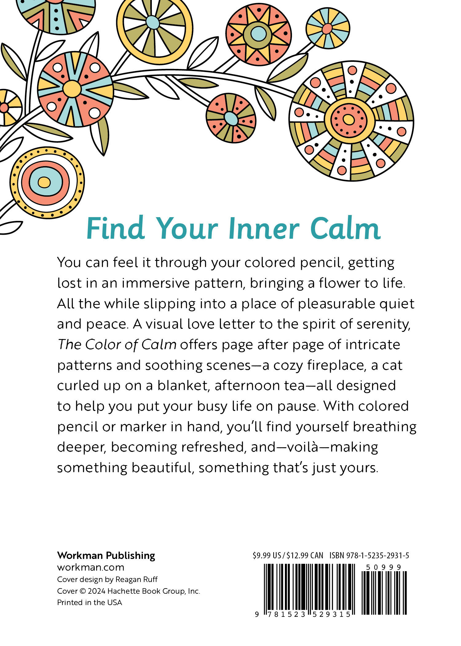 You can feel it through your colored pencil, getting lost in an immersive pattern, bringing a flower to life. All the while slipping into a place of pleasurable quiet and peace. A visual love letter to the spirit of serenity, The Color of Calmoffers page after page of intricate patterns and soothing scenes—a cozy fireplace, a cat curled up on a rug, afternoon tea—all designed to help you put your busy life on pause. With colored pencil or marker in hand, you’ll find yourself breathing deeper, becoming refreshed, and—voilà—making something beautiful, something that’s just yours.
