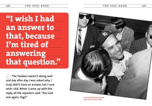 Yogi Berra’s gift for saying the smartest things in the funniest, most memorable ways has made him a legend. The Yogi Book brings all of his famous quotes together in one place—and even better, gives the story behind them. “It ain’t over till it’s over.”—that’s Yogi’s answer to a reporter when he was managing the Mets in July 1973, and they were nine games out of first place (not only quotable, but prophetic—they won the pennant). “Nobody goes there anymore. It’s too crowded.”—Yogi’s comment to Stan Musial and Joe Garagiola about Ruggeri’s restaurant in St. Louis in 1959. “It gets late early out there.”—Yogi describing how shadows crept across Yankee Stadium’s left field during late autumn afternoons.